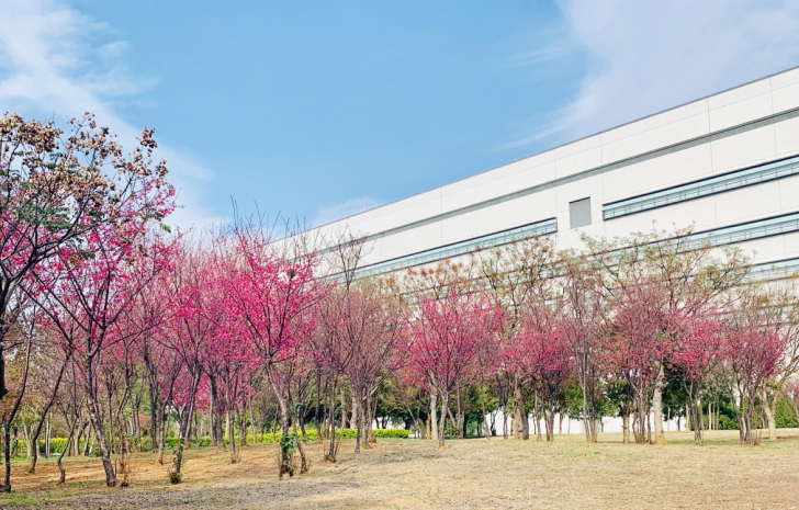 十二年護(hù)樹(shù)有成,友達(dá)后里廠區(qū)櫻花步道成為員工賞花一隅 |