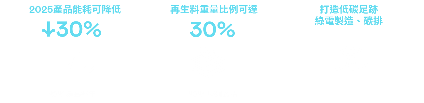 透過(guò)降低能耗、循環(huán)再生料與包材回收方式,投入更先進(jìn)的研發(fā)能量,開(kāi)拓綠色產(chǎn)品的市場(chǎng)與客戶合作共同推廣綠色價(jià)值觀,凝聚綠色溢價(jià)的減碳目標(biāo)。